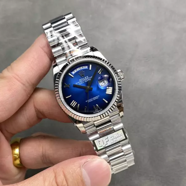 QF공장 롤렉스 데이데이트 36 청판 다이얼 화이트 골드 금통 128236