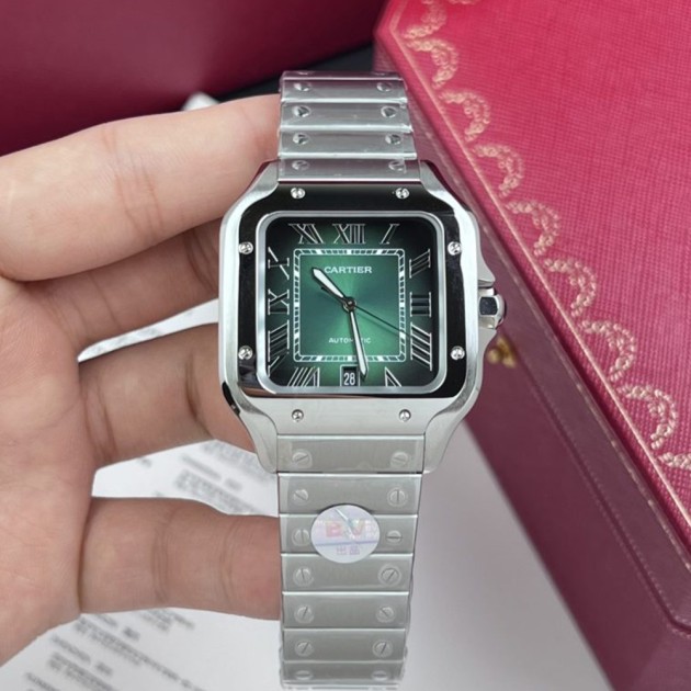 BV공장 까르띠에 산토스 그린 다이얼 39.8mm WSSA0061