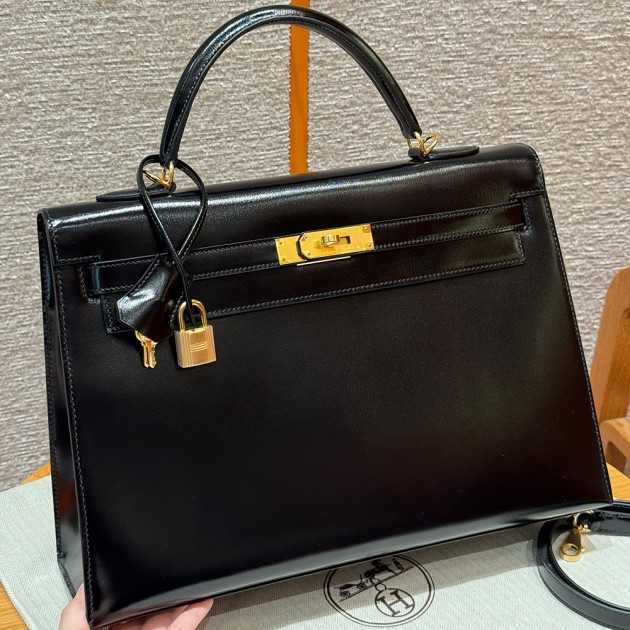 최고퀄 에르메스 올수공 켈리 35 블랙 박스 가죽 금장