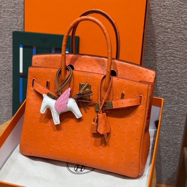올수공 에르메스 버킨 30 93/Orange 타조 가죽 골드 하드웨어