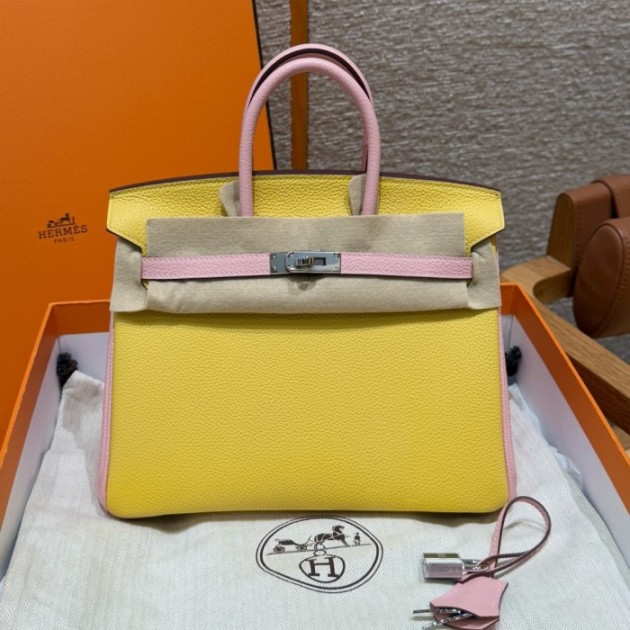 올수공 에르메스 버킨 25 9o/Jaune Naples/3Q/Rose Sakura 토고 가죽 골드 하드웨어