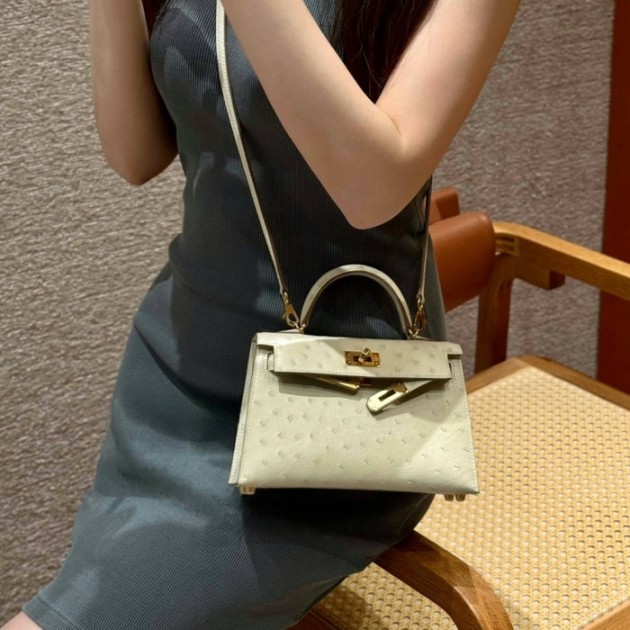 올수공 에르메스 미니 켈리 8L/Beton 타조 가죽 골드 하드웨어