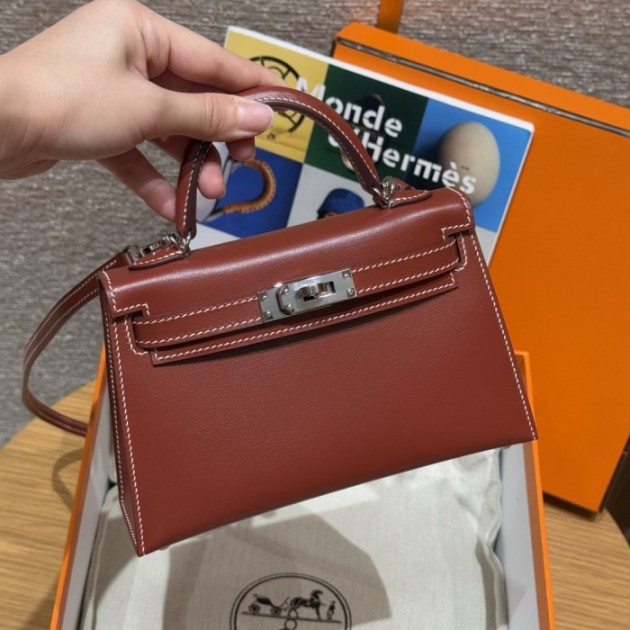 올수공 에르메스 미니 켈리 36/Brique & i2/nata 박스 가죽 실버 하드웨어