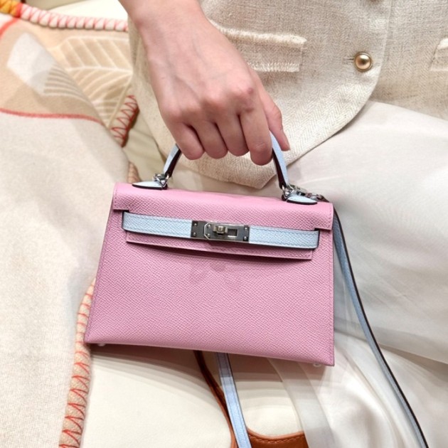 올수공 에르메스 미니 켈리 X9/mauve & T0/Blue Brume 엡송 가죽 실버 하드웨어