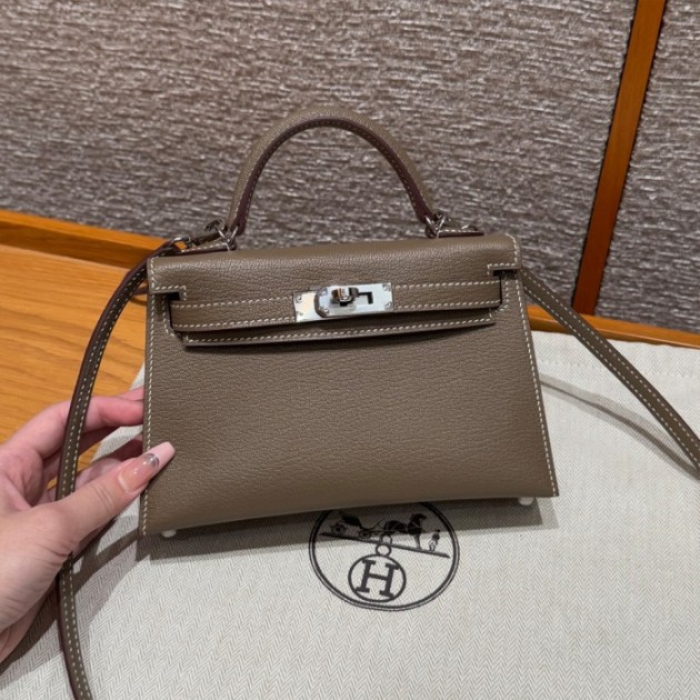 올수공 에르메스 미니 켈리 18/Etoupe 체브레 가죽 실버 하드웨어