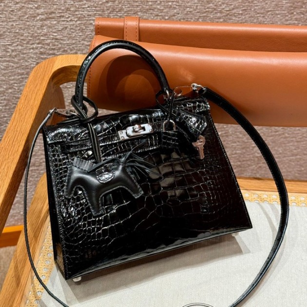 올수공 에르메스 켈리 25 ck89/noir 악어 가죽 실버 하드웨어