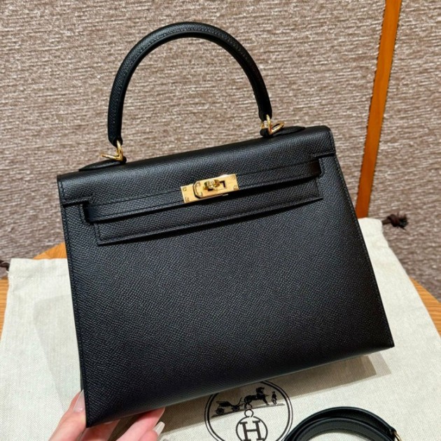 올수공 에르메스 켈리 25 ck89/noir 엡송 가죽 골드 하드웨어