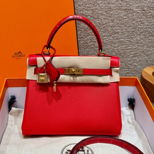 올수공 에르메스 켈리 25 S3/Rouge Coeur 토고 가죽 골드 하드웨어
