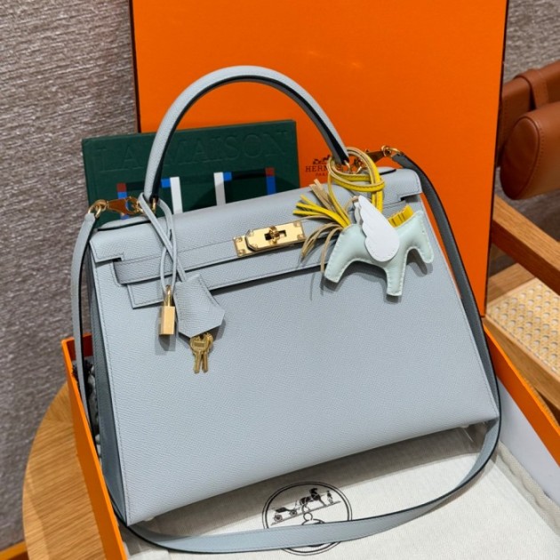 올수공 에르메스 켈리 32 8u/Blue glacier 엡송 가죽 골드 하드웨어