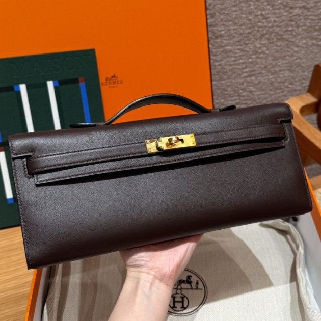 올수공 에르메스 켈리 컷 chocolate 스위프트 가죽 골드 하드웨어