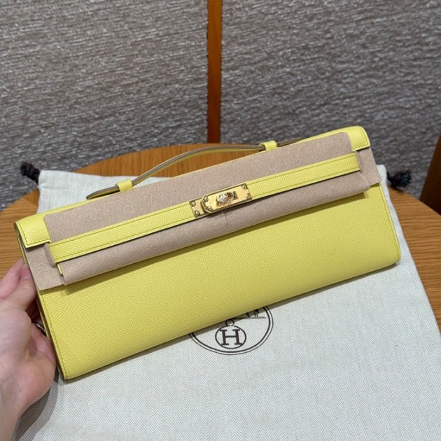 올수공 에르메스 켈리 컷 Jaune Poussin 엡송 가죽 골드 하드웨어