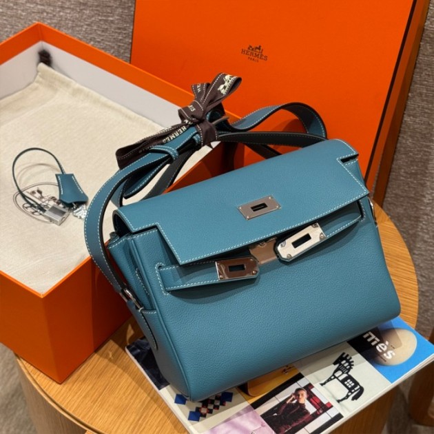 올수공 에르메스 켈리 메신저 24 Blue Jean 에버컬러 실버 하드웨어
