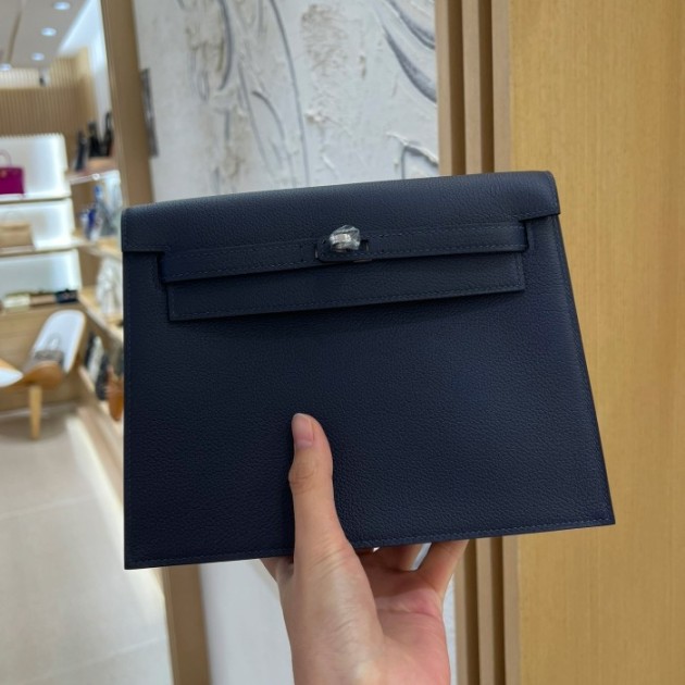 그린엘 에르메스 켈리 단스 사파이어 블루 은장 버클