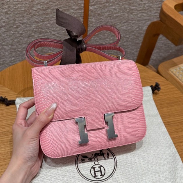 올수공 에르메스 콘스탄스 19 3Q/Rose Sakura 리자드 가죽 실버 하드웨어
