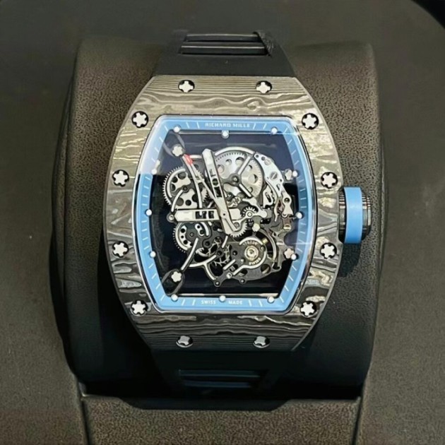 RM공장 리차드밀 부바왓슨 블랙 & 블루 카본 케이스 블랙 러버밴드 RM-055