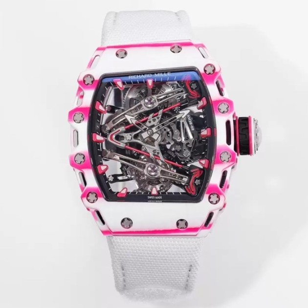 RM공장 리차드밀 수동 와인딩 투르비용 부바 왓슨 화이트/핑크 카본 케이스 화이트 스트랩 밴드 RM38-02