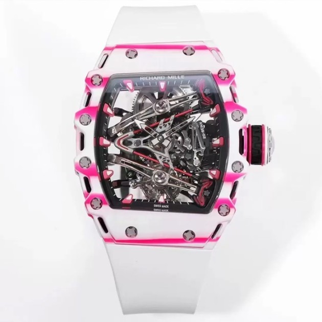 RM공장 리차드밀 수동 와인딩 투르비용 부바 왓슨 화이트/핑크 카본 케이스 화이트 러버밴드 RM38-02