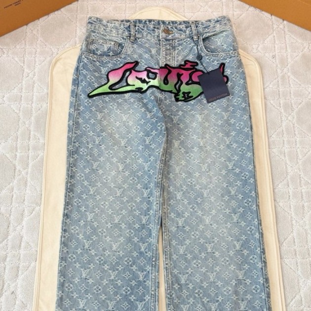루이비통 플레임 자카드 패치워크 데님 팬츠