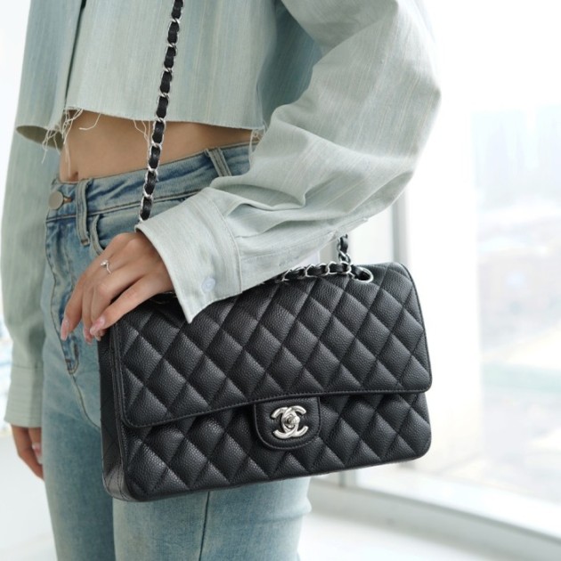 팬더샵 샤넬 클래식 플랩백 블랙 미디움 은장