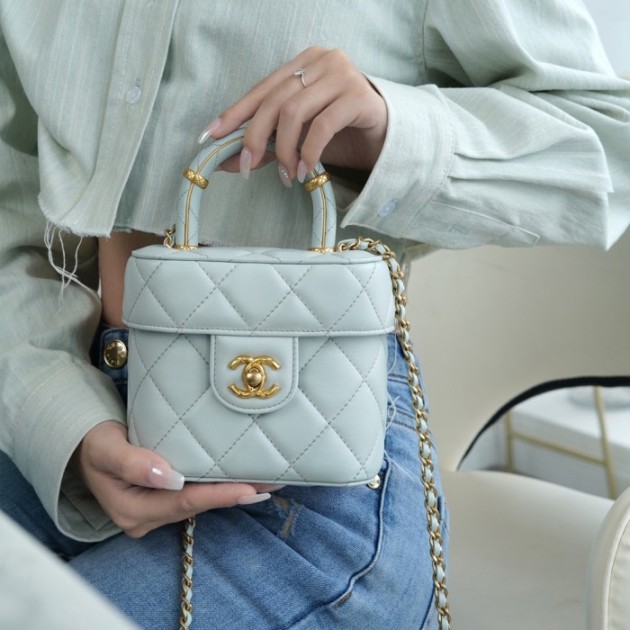 팬더샵 샤넬 램스킨 스몰 코스메틱 케이스 헤이즈 블루 AS3973