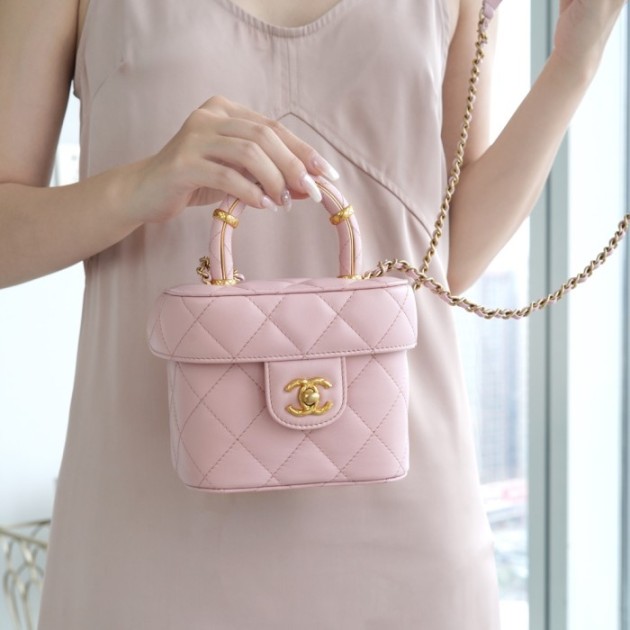 팬더샵 샤넬 램스킨 스몰 코스메틱 케이스 라이트 핑크 AS3973