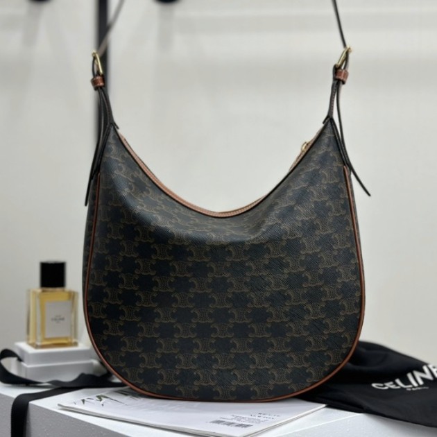 셀린느 하프문 퀴르 트리오페 크로스백 탄 10K642