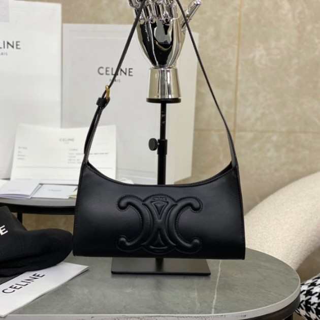 셀린느 스무스 카프스킨 트리옹프 레더 숄더백 블랙 198153