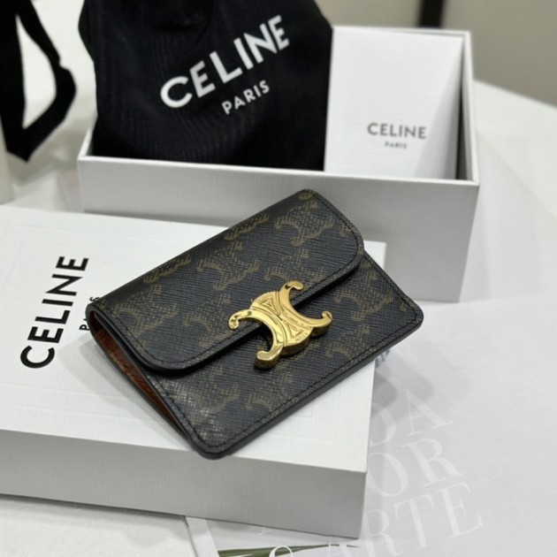셀린느 샤이니 플랩 카드 지갑 트리옹프 캔버스 & 카프스킨 101582