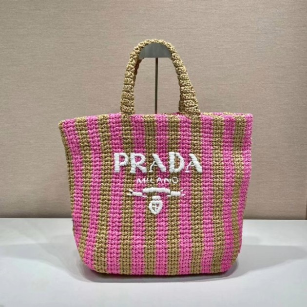프라다 라피아 토트백 핑크