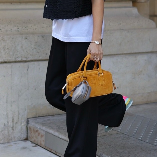 미우 미우 아르카디 패디드 스웨이드 탑 핸들 백 위스키 > 여성가방
