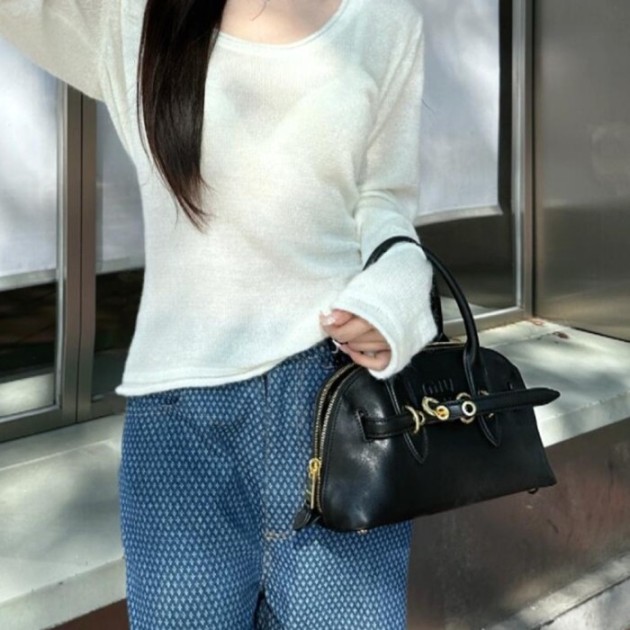 미우미우 아방뛰르 나파 가죽 탑 핸들 백 블랙 > 여성가방