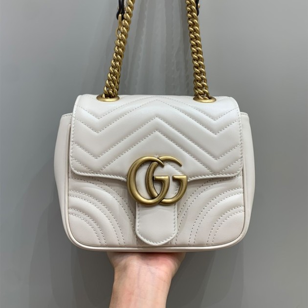 구찌 GG 마몬트 마틀라쎄 미니 숄더백 화이트 739682