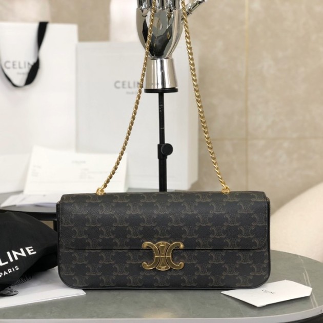셀린느 레더 트리오페 플랩 체인백 블랙 금장 197413