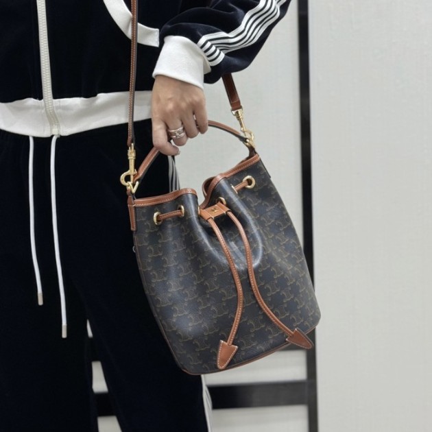 셀린느 클라라 백 트리옹프 캔버스 카프스킨 탄