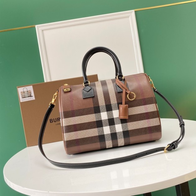 버버리 미디엄 체크 볼링 백 (다크 버치 브라운)