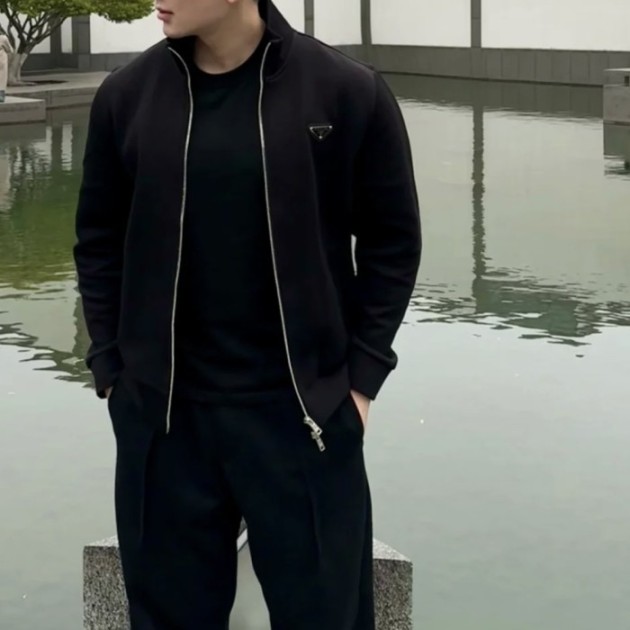 프라다 트라이앵글 로고 오버사이즈 집업