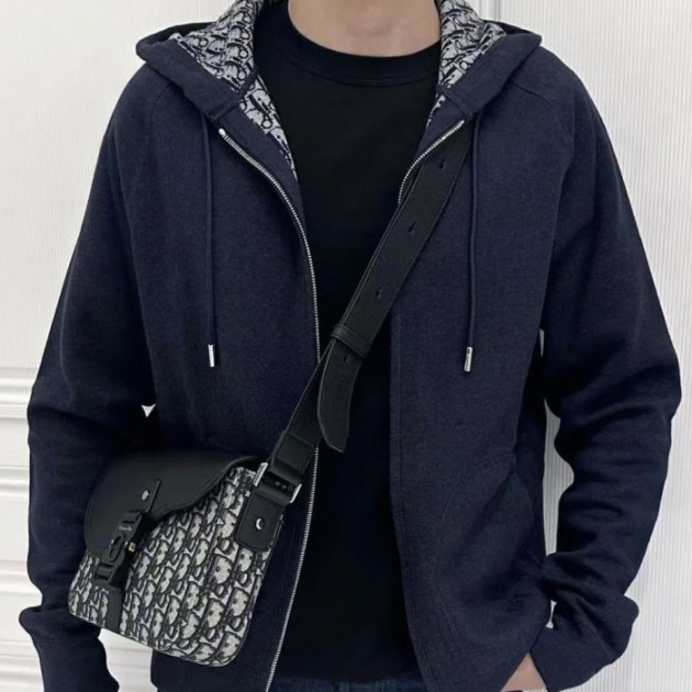 디올 후드 트랙 재킷 네이비 캐시미어 & 울 자카드