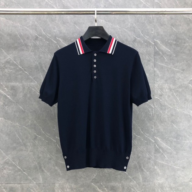 톰브라운 헥터 리버스 인타르시아 폴로 코튼 4바 반팔 네이비
