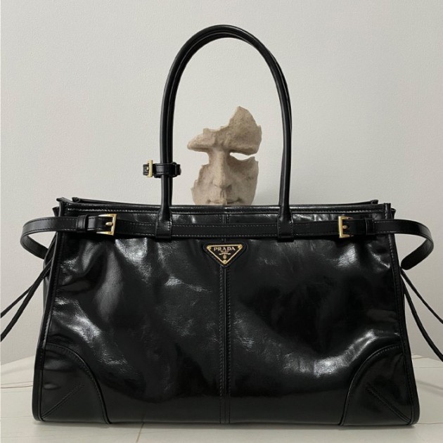 프라다 라지 가죽 핸드백 블랙 1BA433
